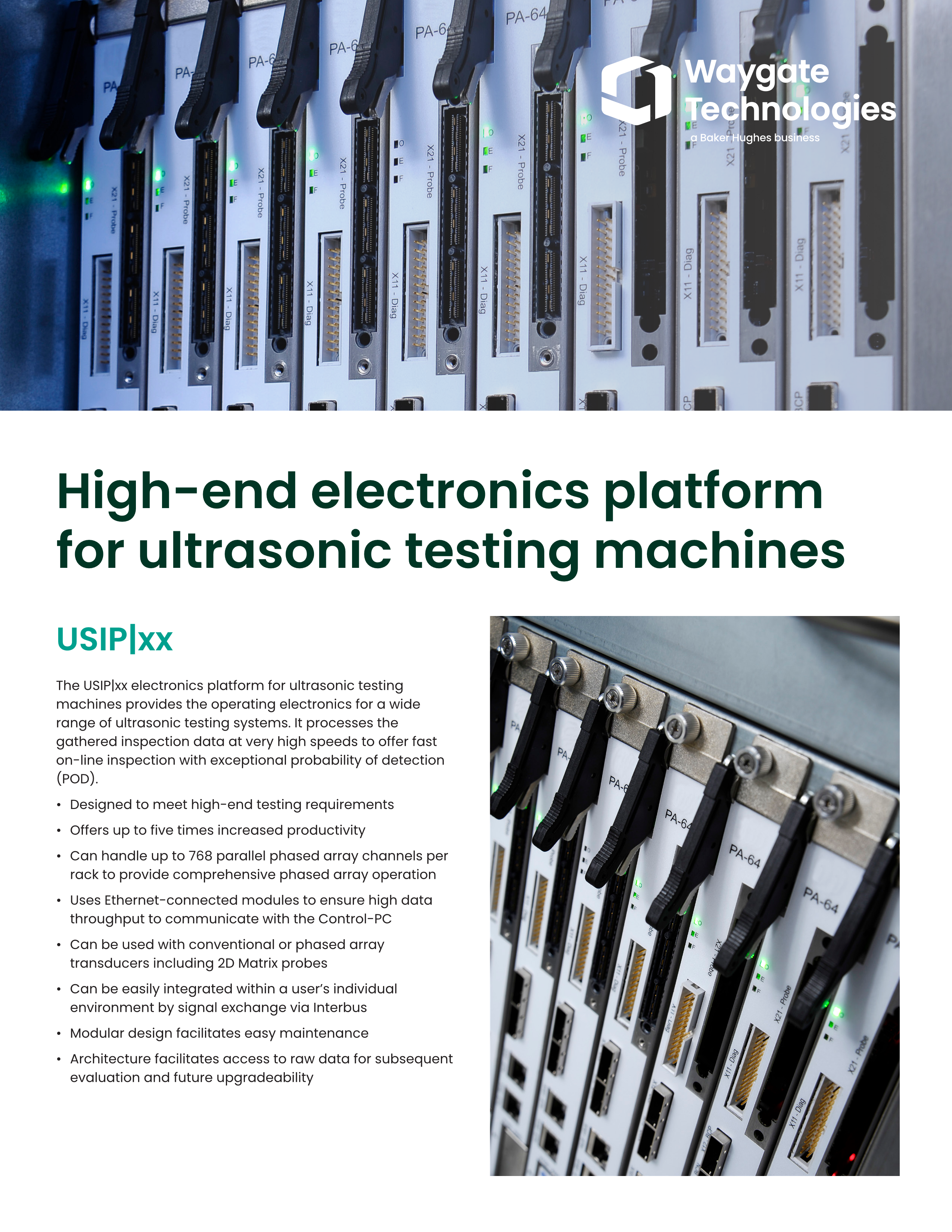 초음파 검사기용 USIP|xx 전자 플랫폼은 광범위한 초음파 검사 시스템에 필요한 작동 전자 장치를 제공합니다.